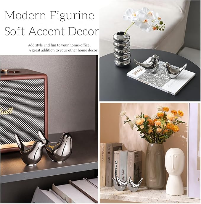 - Lovely Little Bird Shining Ornaments are ideal to decorate your Living room, Bedroom, Porch, Shelf, Desktop, Office, Cabinet etc.; Cute silver pieces will add a modern fashion vibe to your room.