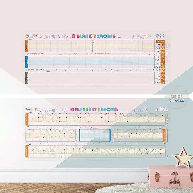 - Attractive Tracing: Helps children develop neat writing skills with whiteboards with lines for handwriting. Light horizontal & vertical guidelines and colored tracing areas ensure correct letter sizing and proper spacing, making it ideal for writing practice for kids age 3-5 and early learning + education.