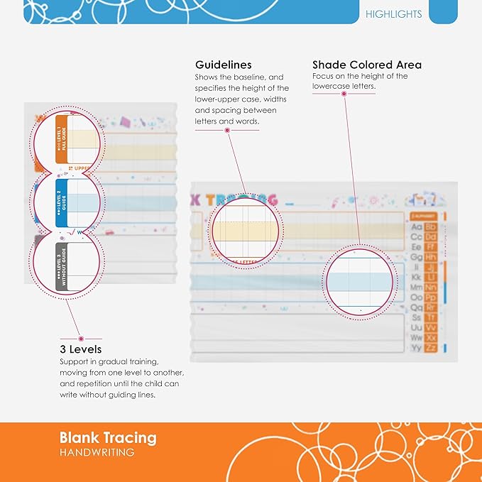 - Attractive Tracing: This dry erase board with lines helps children write neatly with light horizontal & vertical guidelines and color-coded areas for proper letter size and spacing. Great for pre school learning activities and writing practice for kids age 3-5.