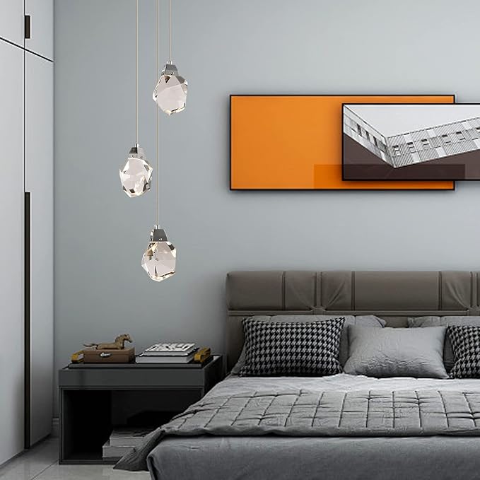 - 【Clear Crystal】The modern crystal chandelier lamp uses clear crystal for the lampshade. And the 3-lights dimmable pendant lighting uses LED bulbs.
