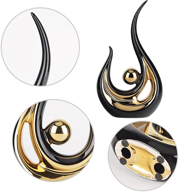 - DECORATE YOUR SPACE: Classic elements combined with abstract design, unique ceramic shaped statue surface is electroplated, bright color, never fade. Smooth touch, suitable for decorating living room home decor, living room coffee table decor, modern room decor, dining room table decor centerpiece, home office decor, dining table decor, men's room decor, dining room table decor centerpiece, black and gold home decor, bookshelf decor, TV stand, men's room accessories, it will be an impressive dec