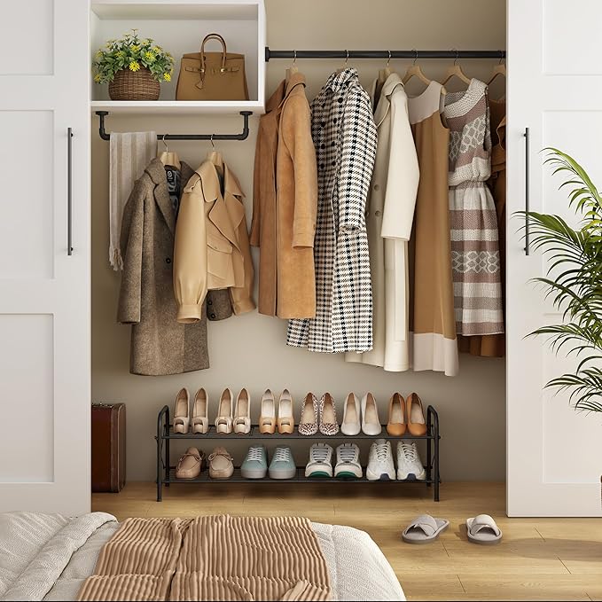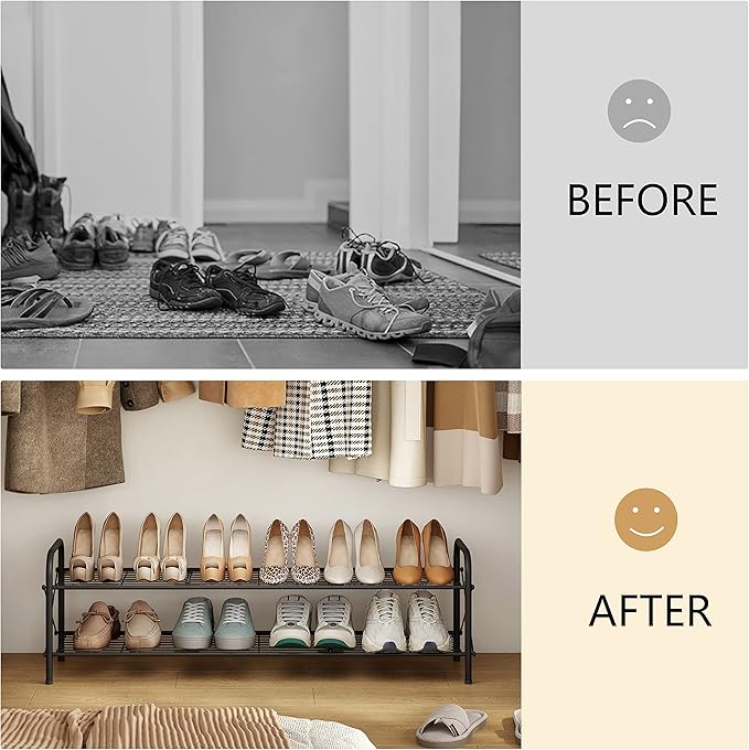 - 【2-Tier Design】: Two-layer shoe rack design is easy to use and maximizes storage space. You can arrange boots or shoes according to the height of each layer to keep your shoes organized and tidy. Say goodbye to the messy and unorganized arrangement.