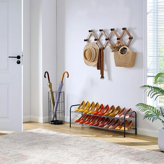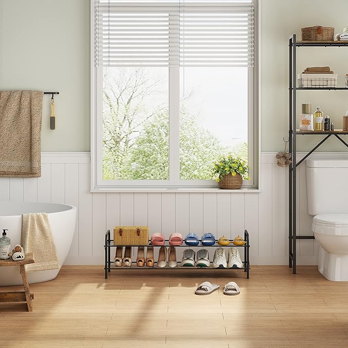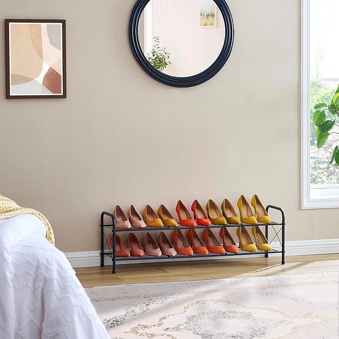 Hoctieon 2 Tier Shoe Rack for Closet, Durable Mesh Style Shoe Rack, Entryway Shoe Shelf, Shoe Storage Organizer for Hallway, Bedroom, Living Room, Wardrobe, Black