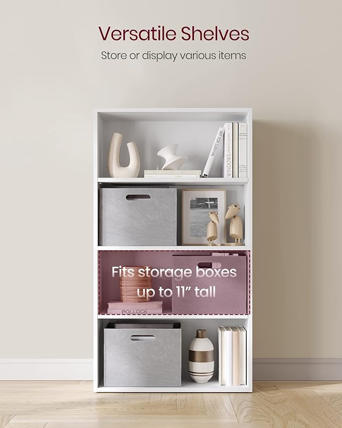 VASAGLE CUSTOS Collection - Bookshelf, 4-Tier Bookcase, Book Shelf, Open Storage Shelf, 9.4 x 23.6 x 42.4 Inches, for Living Room, Home Office, Dinning Room, Cloud White ULBC164T14
