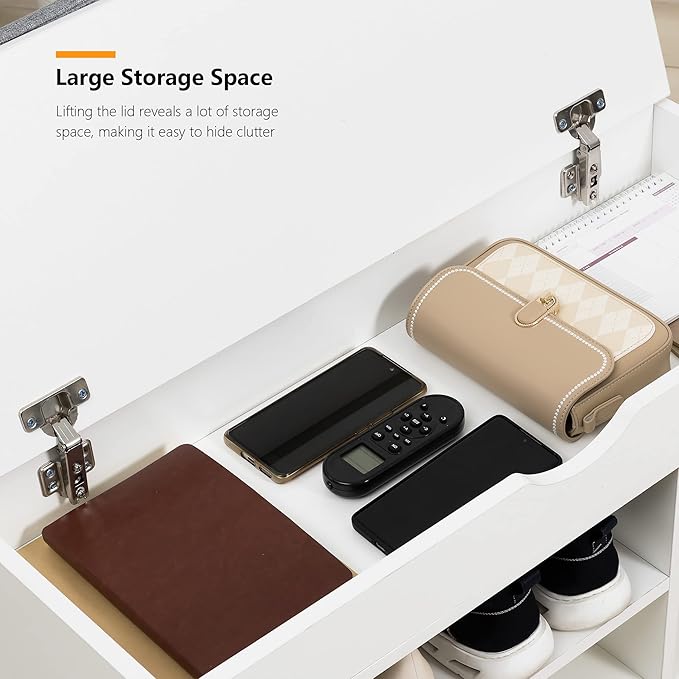 - 【Space-Saving Shoe Storage Bench】 There are 3 separate compartments, which can be used for your flat shoes, sports shoes, slippers, etc. With this white shoe storage bench, you can sit comfortably and tie your shoes effortlessly.