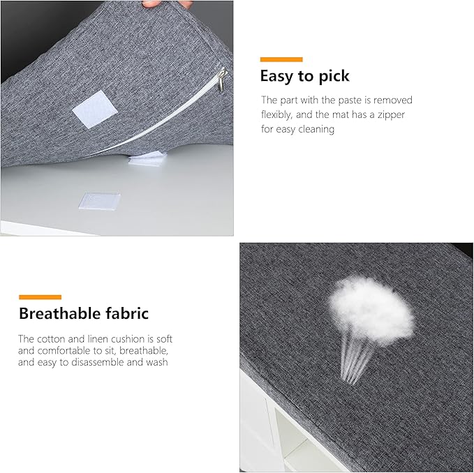 - 【Portable Storage Tool】 A thick seat cushion comes with the shoe bench. This shoe storage bench not only keeps the hallway tidy, but also allows you to sit and change your shoes. The cushion cover is removable and easy to clean.