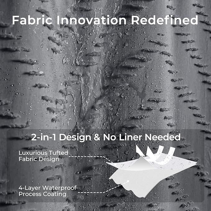 - 【 Grey Textured Double Layer Waterproof Shower Curtain 】 This Tufted Shower Curtain Adopted Double layers Fabric,Ultra-textured.Back waterproof TPU fabric which is expertly chosen, made and tested, environmentally-friendly, without any irritation, good hygienic properties, touches soft and comfortable. This great quality water resistant shower curtain is definitely worth the price, you won't regret it!