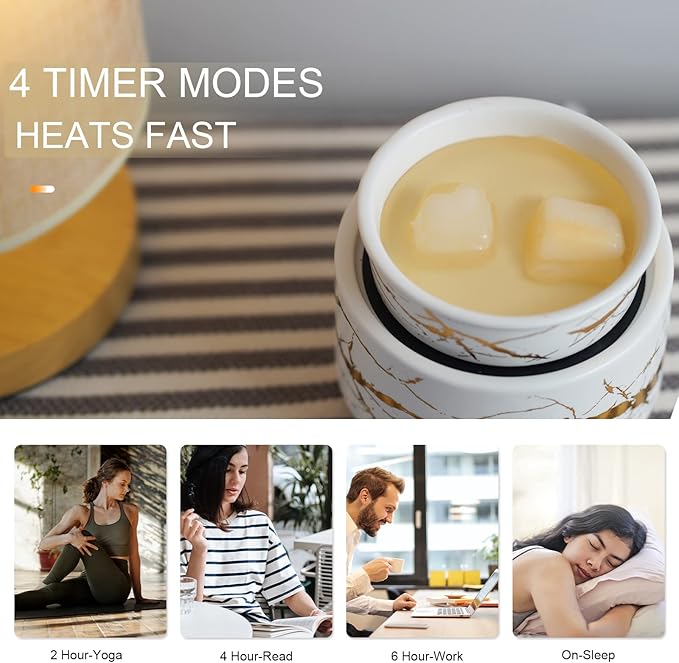 - ✅【Quick Heating】: Heats up fast and evenly to release rich fragrance across your room in minutes. Compatible with wax melts, essential oils, or candles, this wax candle warmer ensures strong scent diffusion without overheating. The gold marble finish adds a clean, elegant touch to any room.