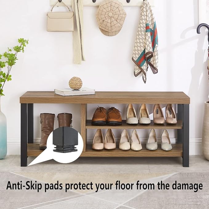 FOLUBAN Shoe Bench for Entryway, Wood and Metal Indoor Bench with Shoe Storage and Seating for Bedroom, Hallway, Living Room, Rustic Oak, 43.3 Inch