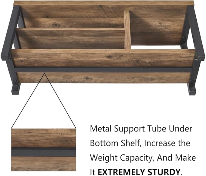 - Modern Design: Black metal frame and rustic oak wood grain surface give this shoe storage bench a modern industrial look, which adds the elegance and warmth charm for your living room.