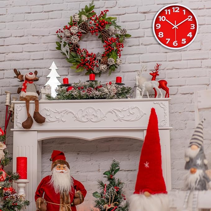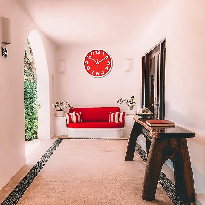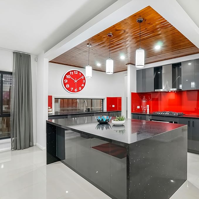 - 【Easy to Read】--The nice morden wall clock with large bold 3D numbers on a red bright background dial make it easy to read from any corner of your room.The elderly can also easily see the time screen.