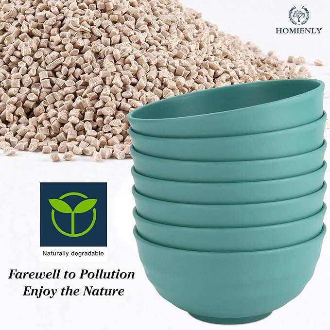 Homienly Wheat Straw Large Bowls, 60 OZ Salad Bowls Set of 8, Unbreakable Large Serving Bowl for Kitchen, Camping, Microwave and Dishwasher Safe Big Plastic Bowl Set Reusable-Green