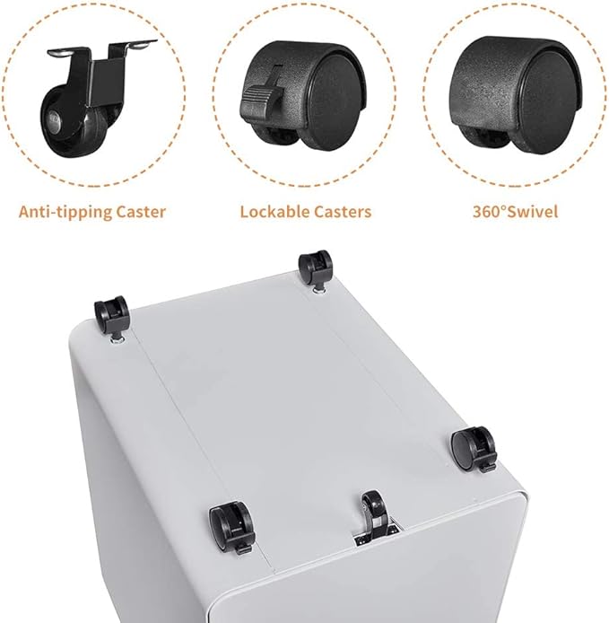 - ✅➤【LOCK AND ANTI-TILT DESIGN FOR HIGHT SECURITY 】: The sturdy file cabinet comes with 2 keys to lock up the top and bottom drawers. And the small wheel in the front that keeps the cabinet from tipping. The rear casters can be moved around and locked. Easy to move around and enough space for your files and keep important Files. Home files fit well in this stable and movable 3-drawer file.