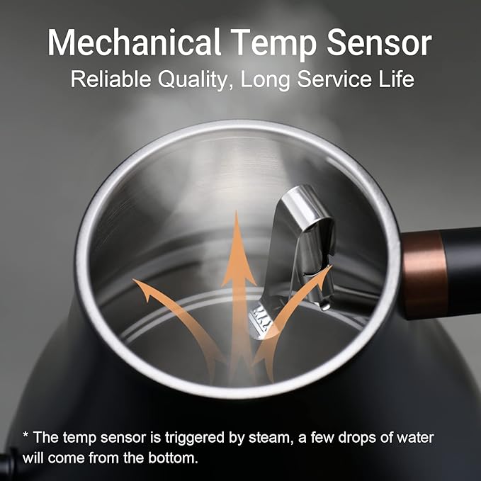 • Durability: Unlike other electric kettle made of plastic or easy faulty temperature sensor, its stainless steel mechanical temp sensor is more reliable and durable, it expanded its serving life a lot.