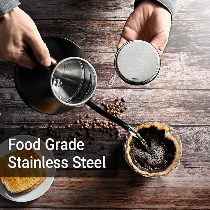 • Precision Pouring: Benefits from its gooseneck spout, you are always provided with precise control over the water flow and pouring speed, perfectly for creating a nice cup of coffee or tea.