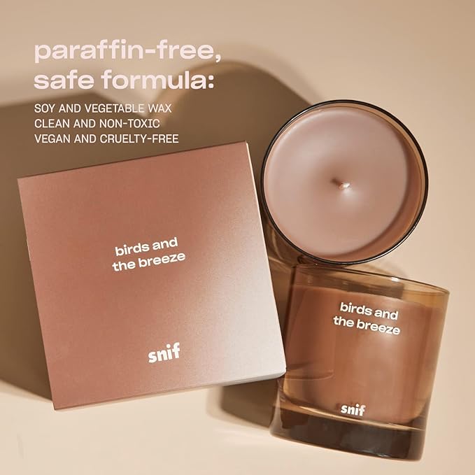 Birds and The Breeze Luxury Scented Candle by Snif, Light and Airy Scent, 50+ Hours, 100% Cotton Fiber Wicks, Soy Wax Blend, Non-Toxic, Vegan, 8.5 oz…
