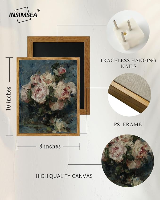 InSimSea Framed Wall Art for Living Room Roses in Vase Canvas Flower Art Home Valentine Decor Boho Wall Pictures Vintage Botanical Art Mid Century Floral Wall Decor Farmhouse Kitchen Bathroom 8x10in