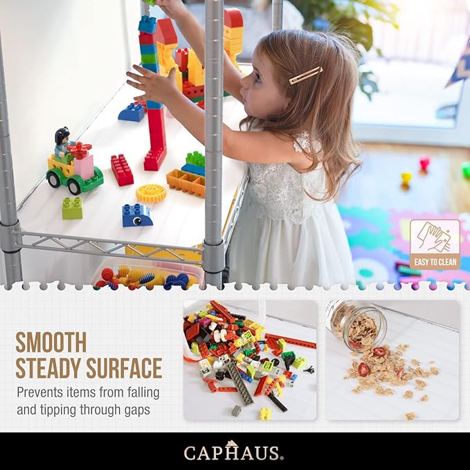 - π¨ Multifunctional Shelves Fit Everywhere You Want β This multifunctional metal storage shelf can fit any working or person place. No matter at living room, kitchen, office, basement, or garage, it would be your ideal assistant of organizing. You can choose a shelf with wheels or with leveling feet to match your specific need. If you have any issue with the item you purchased, please feel free to contact our customer service team, they will definitely assist you with it!