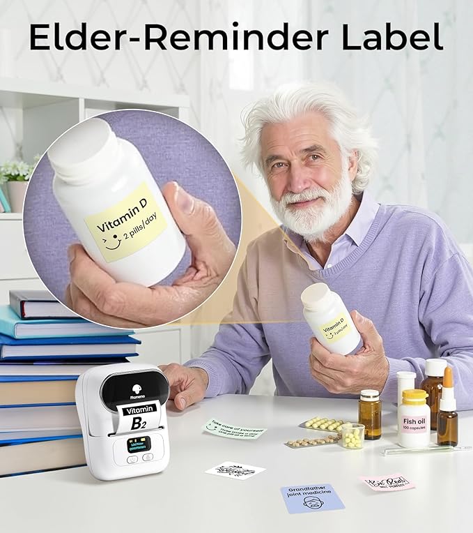 - [Custom labels for diversity]-Phomemo label printer havs multiple styles of label tape for choosing, such as coloured labels, clear labels, round rectangular labels, price labels and more. They are highly adhesive, peel off without residue and are also scratch resistant, water and oil repellent.