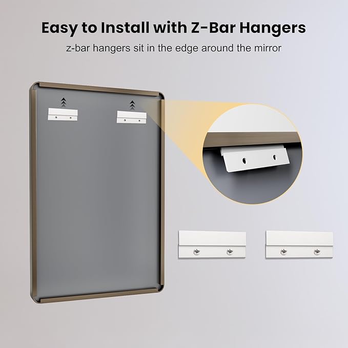 - 【Secure & Easy Hanging Option】: The sturdy wall mirror includes two Z-bar brackets; The brackets are sturdy enough to support the weight of the mirror and ensure the mirror stay securely and sturdily against the wall; Very easy to install