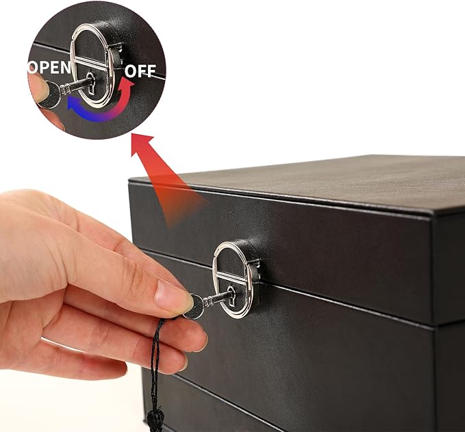 - 【Premium Material】 : This jewelry box is made of durable PU leather, which is stain-resistant, waterproof, non-deforming and easy to clean. The lining is wrapped in durable soft velvet to provide all-round protection for your jewelry and comes with a smooth and delicate metal buckle for easy opening and closing. The bracelet, earrings and necklace storage rack is perfect in appearance, material and function.