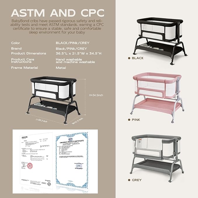 - Safety and Stability: Bedside sleeper with the design of 8 feet and extra wide bottom bracket, our cribs are more stable and level, and the mattress will not tilt to one side; BabyBond cribs strictly pass and exceed ASTM and CPSIA standards