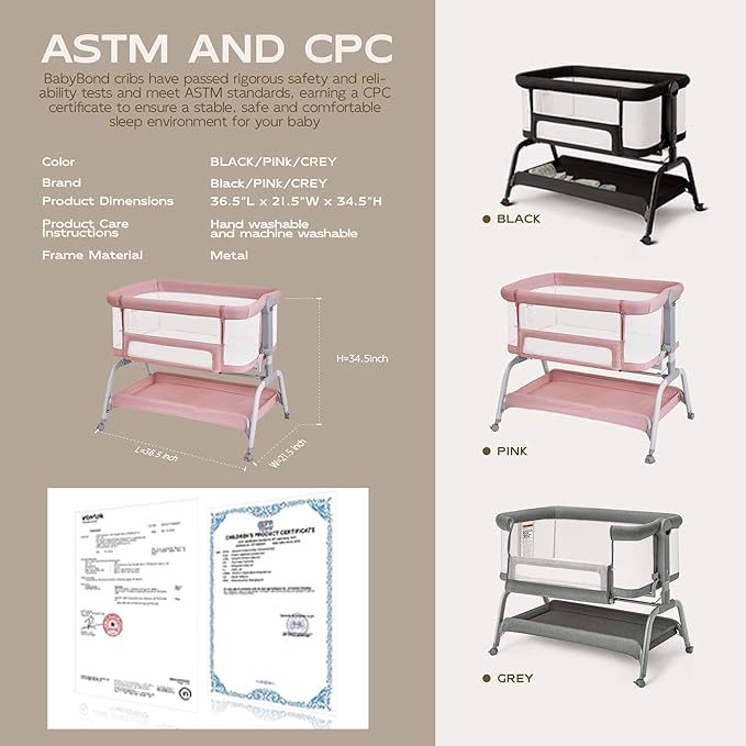 - Safety and Stability: Bedside sleeper with the design of 8 feet and extra wide bottom bracket, our cribs are more stable and level, and the mattress will not tilt to one side; BabyBond cribs strictly pass and exceed ASTM and CPSIA standards