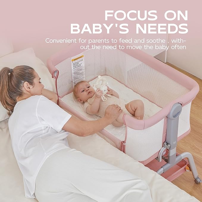 BabyBond Baby Bassinet, 3 in 1 Bassinet Bedside Sleeper with Washable Soft Mattress and Sheet, 6 Height Adjustable Bedside Crib, 4-Sided Mesh Bedside Bassinet for Baby