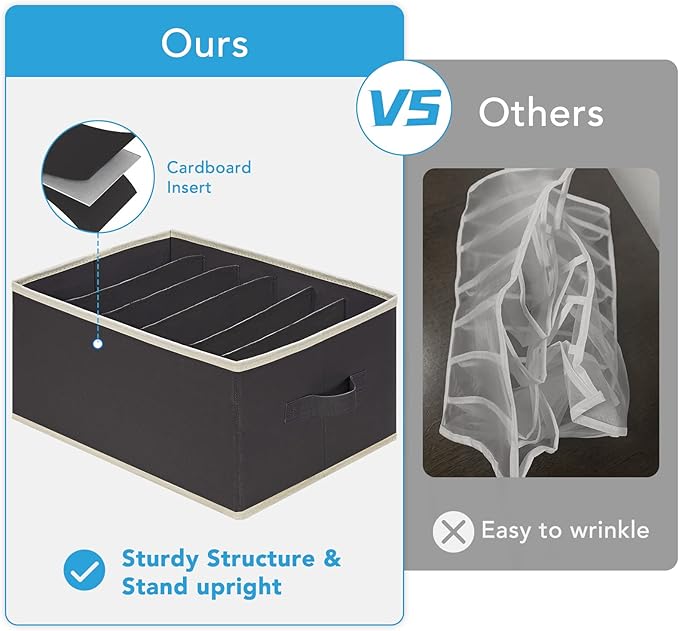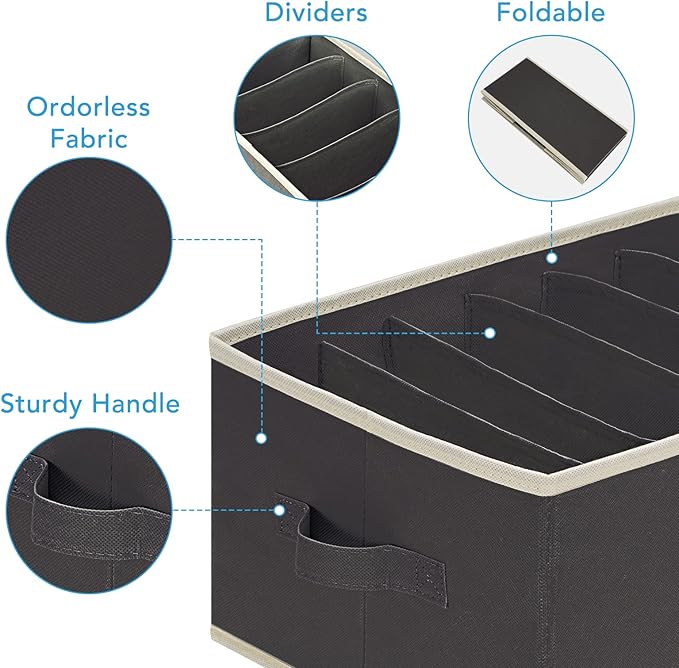 - 6 Large Compartments: The clothes organizer measures 15.7 x11.1 x7.9 inches with 6 large compartments. Each grid is 50% larger than others. With this big size container, it is spacious for your clothes, pants, jeans, sweaters, t-shirts, thin coats, etc