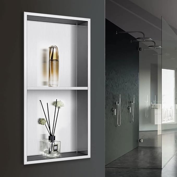 - 【HIGE QUALITY】The material of our shower niche is 304 stainless steel with nanocomposite coating on the surface, the niches shelf uses seamless welding technology, so it will not be easy to deform,rust or corrode even with daily use.