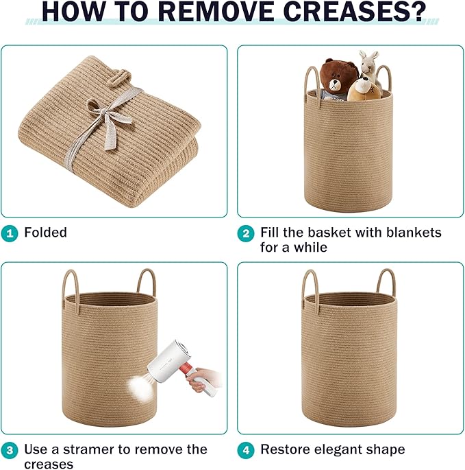 - 【Multipurpose Storage Baskets】58L capacity basket can keep things organized in a stylish and decorative way. You can use them to store extra towels, blanket, clothing, toys for baby and dogs, books, pillows or any other household items around the house, anything you can imagine