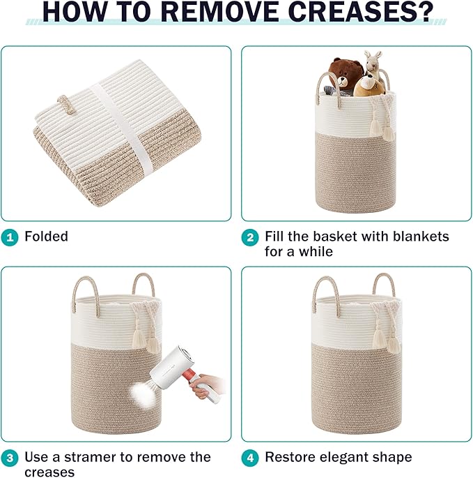 - 【Multipurpose Storage Baskets】58L capacity basket can keep things organized in a stylish and decorative way. You can use them to store extra towels, blanket, clothing, toys for baby and dogs, books, pillows or any other household items around the house, anything you can imagine