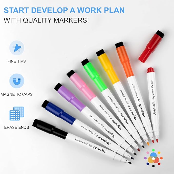 - 🌟Large Size & Super Value Combination: Cazeyoo 16 X 12 inches Magnetic dry erase white board set comes with 10 pcs magnetic dry erase markers (include 8 color), 5 pcs magnetic piece, 1 pcs dry eraser, 1 pcs marker holder. Double-sided writing space for whiteboards, perfect for office desktops, study desks, bedside tables, classroom lecterns and kitchen counters. Portable and lightweight design allows you to easily change the location and take it with you wherever you like.