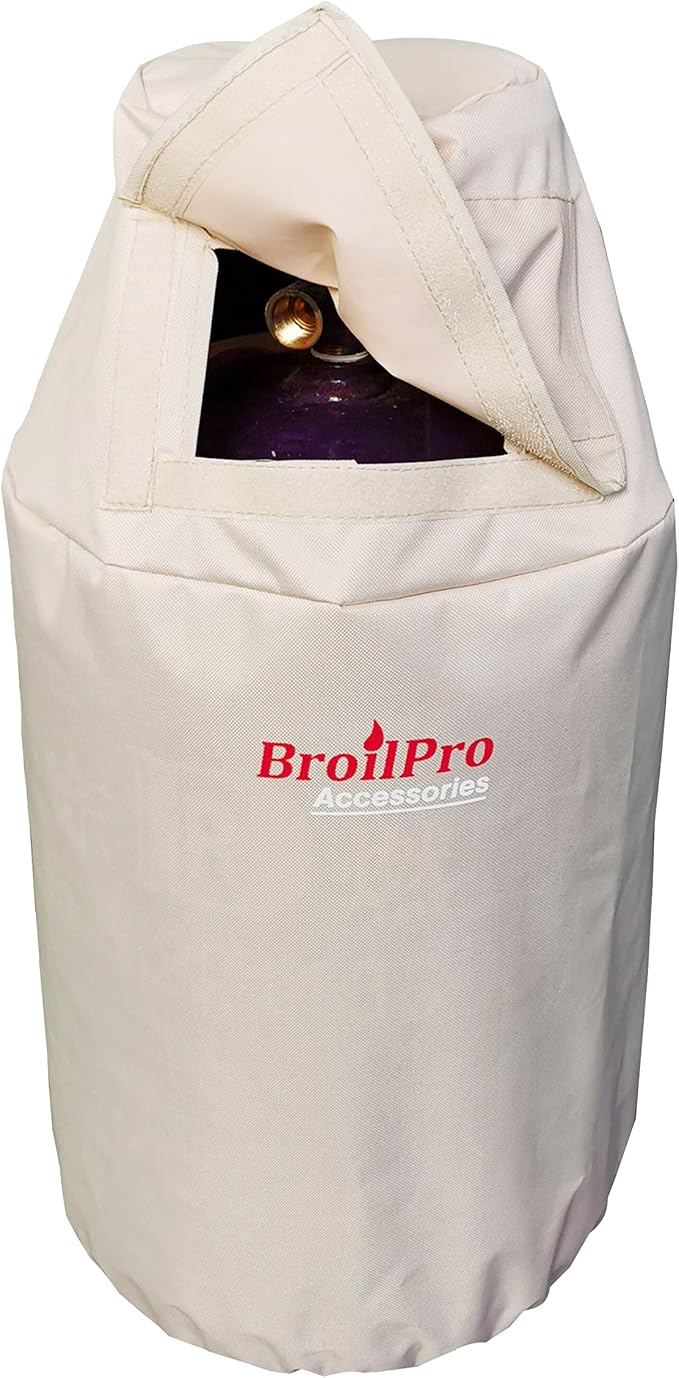 - Easily protect your propane tank with this BroilPro Accessories propane tank cover, which is constructed with strong heavy duty 300D Polyester. The cover fits most standard 30-lb. propane tanks, so you can be assured of a quality fit.