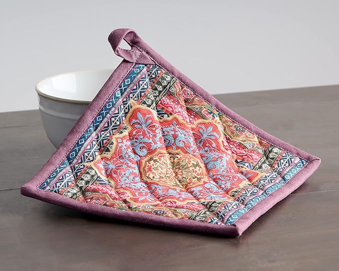 Maison d' Hermine 100% Cotton Oven Mitt & Pot Holder Set (7.5"x13" & 8"x8") Heat Resistant BBQ Cooking Gloves with Loop for Thanksgiving Christmas Decorations Handling Hot Pans (Ispahan)