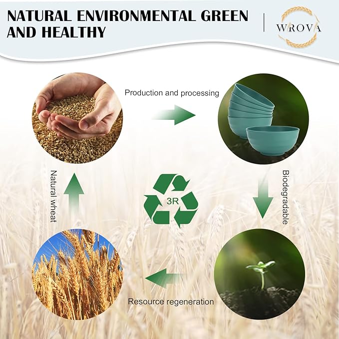 - 【Wheat Straw Materials】These bowls set is made of natural organic wheat straw fiber, the material is non-toxic,odorless.There is no plastics and harmful chemical materials.Very healthy and beautiful tableware for your family.