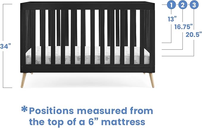 - ADJUSTABLE HEIGHT: Adjustable height mattress support with 3 convenient positions to grow with your baby