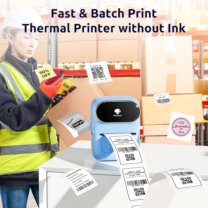 - Powerful APP Easy to Use- Phomemo M110 label maker machine works with our app “Print master”. More than 100+ free label templates, 13 languages, can print text, barcode, Icon, picture, tabel ect. Freely edit your own labels. One click to batch printing, help your business more efficient