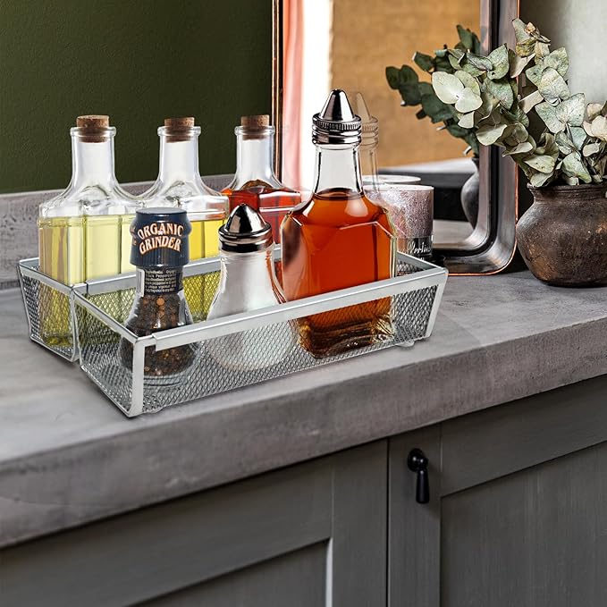 2PCS Drawer Organizer, Mesh Drawer Organizer with Interlocking Arm for Utensil, Cosmetic, Flatware, Pen (9 * 3 * 2 Inches, Grey)