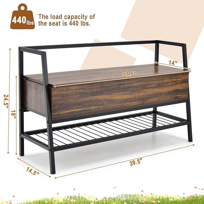 Giantex 3-in-1 Shoe Storage Bench, Rustic Brown, Metal Frame, 440 lbs Capacity, Anti-Toppling Devices, 3 Functional Areas