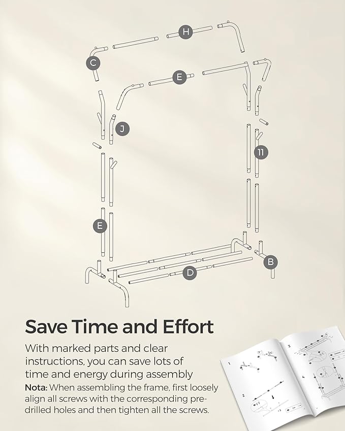 - 【EASY TO ASSEMBLE】With a simple design, labeled parts, and easy-to-follow instructions, putting together this clothes rack is a hassle-free process