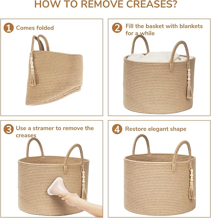 - Note. This basket ships folded. It will turn back to its elegant shape quickly by filling it with towels or blankets, and ironing is a great idea as well