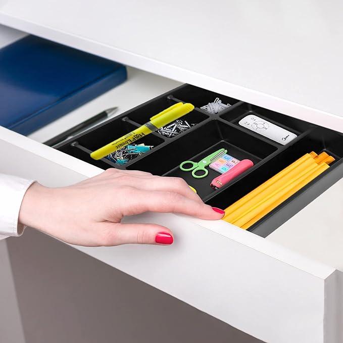 - Multi-compartment drawer organizer to sort and organize all your office supplies. Measures 14.88 x 11.88 x 2.5