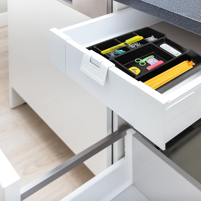 - Notched groove on small compartment to hold your go-to pen. Designed to fit in most standard drawers of file cabinets and pedestals.