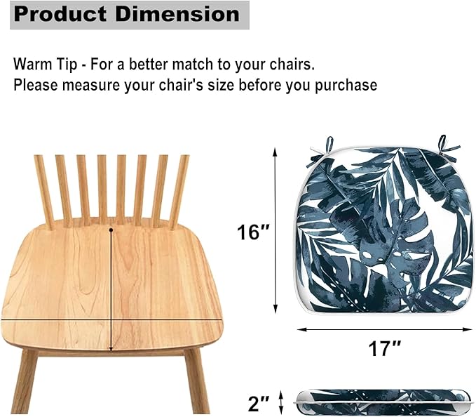- 【PACKAGE】 - Including 2pcs outdoor chair pads measuring 17" W x 16" D x 2" H. Please measure the dimensions of your furniture's seating area before purchasing. NOTE: The seat cushions are vacuum compression, please wait 24 hours to expand to final size listed in description