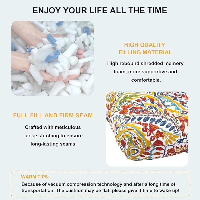 - 【SUPPORT PERFORMANCE】 - The seat cushions are filled with soft superior polyester fiber and shredded memory foam, with better resilience performance ensures longer use. Ergonomic design can relieve pressure, so you can sit comfortably for a long time but without discomfort. Sewn circle tack construction prevents cushion fill from shifting and bunching