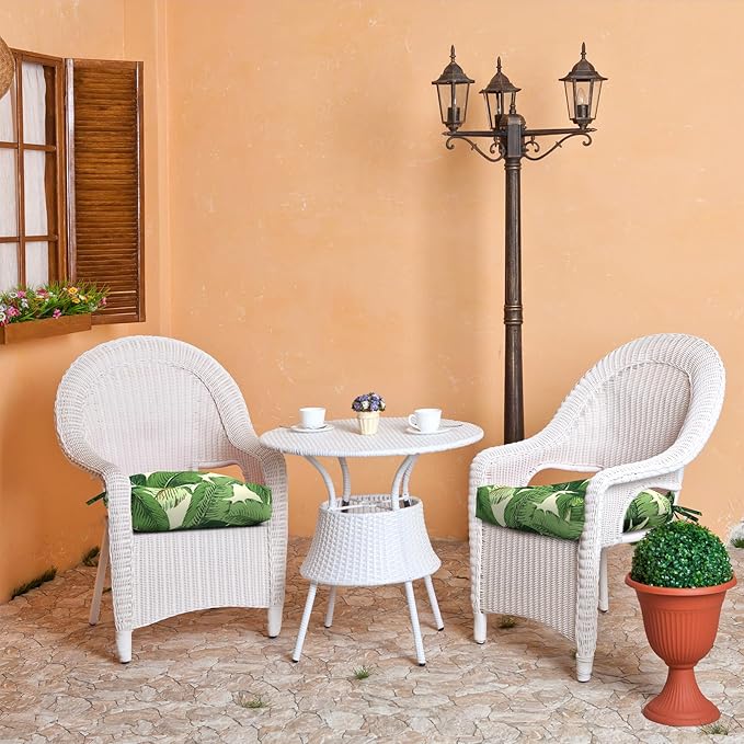 Set of 2 Outdoor Tufted Chair Cushions 19"x19"x4", Water Repellent Patio Seat Cushions with Ties, Replacement Chair Pads for Wicker Dining and Patio Furniture - Swaying Palms Green