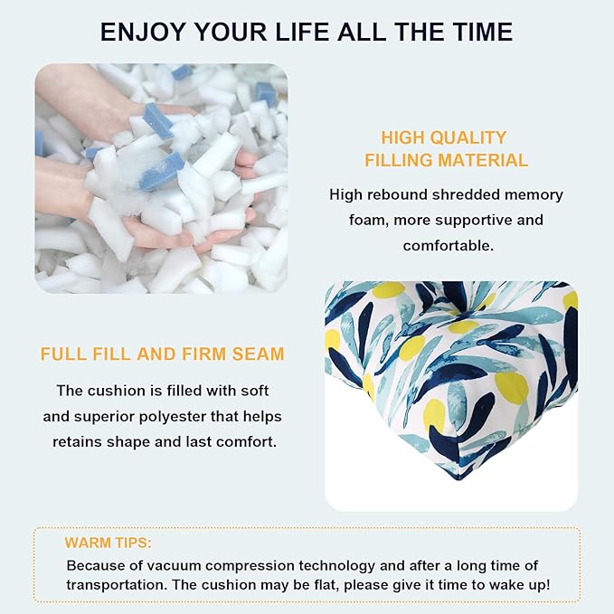 - 【WASHING TIP】 - Specifically designed for outdoor patio furniture. Gently wipe the stained area with a mild detergent and warm water. Allow it to air dry; do not bleach. If you have any inquiries about our outdoor high back cushions, please feel free to contact us. Your satisfaction is always our priority