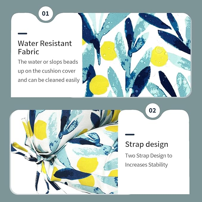 - 【ALL-WEATHER USE】 - The outer fabric is made of durable polyester with special coating to help water droplets tend to slide off. Prevent water and blot from splashing effectively. Besides the durable coating make cushion's cover not easy to fade under the sun, this durable material is designed to withstand several seasons of use. NOTE: We kindly advise against leaving it out in heavy rain