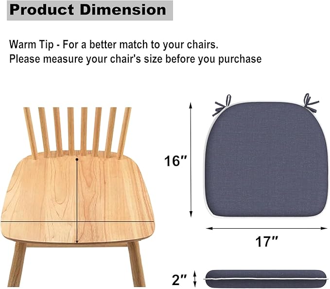 - 【PACKAGE】 - Including 2pcs outdoor chair pads measuring 17" W x 16" D x 2" H. Please measure the dimensions of your furniture's seating area before purchasing. NOTE: The seat cushions are vacuum compression, please wait 24 hours to expand to final size listed in description